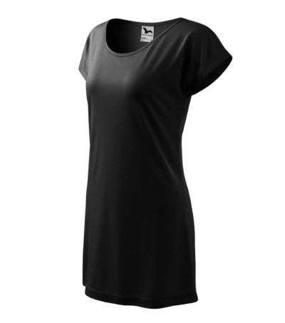 Testre simuló női póló. Lezser szabás, kimonó ujjal. Ovális nyakkivágás, az alapanyagból készült szegéllyel. A póló hossza több viselési módot tesz lehetővé: póló, ruha, tunika. A póló szárítását, vízszintes helyzetben ajánljuk, a felhasznált anyagból kifolyólag.